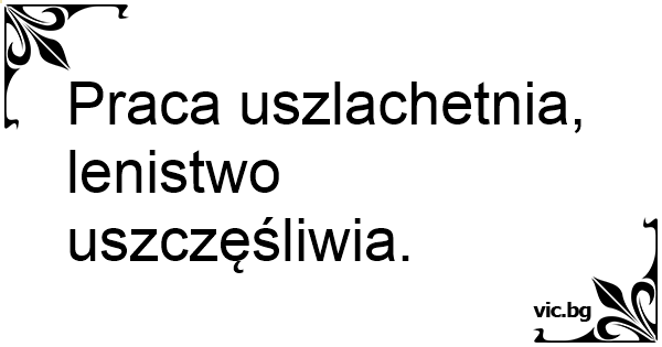 Praca uszlachetnia, lenistwo uszczęśliwia.