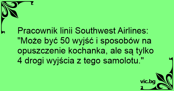 "Może być 50 wyjść i sposobów na opuszczenie kochanka, ale są tylko 4 drogi wyjścia z tego samolotu."