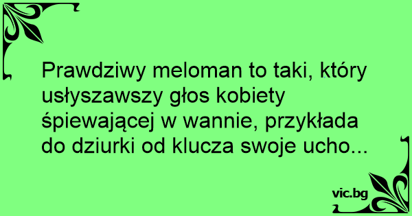 Prawdziwy meloman to taki, który usłyszawszy głos kobiety śpiewającej w wannie, przykłada do dziurki od klucza swoje ucho...