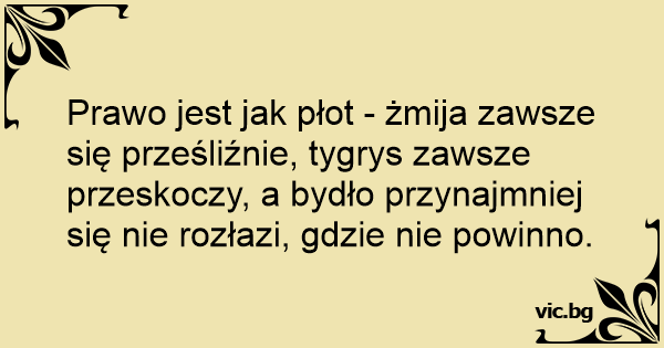 Prawo jest jak płot - żmija zawsze się prześliźnie, tygrys zawsze przeskoczy, a bydło przynajmniej się nie rozłazi, gdzie nie powinno.