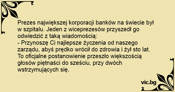 Prezes największej korporacji banków na świecie był w szpitalu. Jeden z wiceprezesów przyszedł go odwiedzić z taką wiadomością: