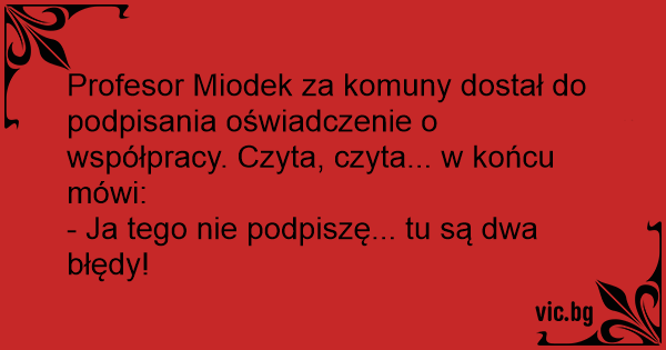 Profesor Miodek za komuny dostał do podpisania oświadczenie o współpracy. Czyta, czyta... w końcu mówi: