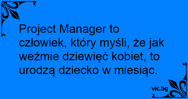 Project Manager to człowiek, który myśli, że jak weźmie dziewięć kobiet, to urodzą dziecko w miesiąc.