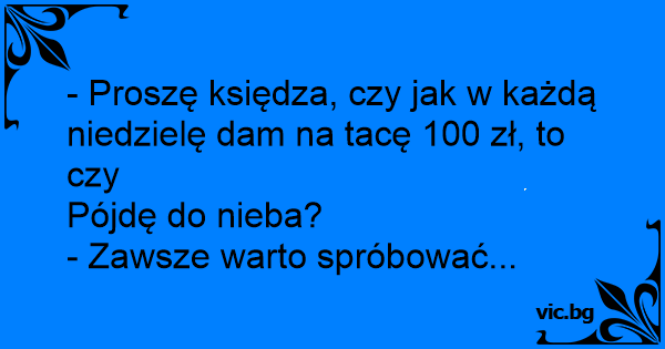 - Proszę księdza, czy jak w każdą niedzielę dam na tacę 100 zł, to czy