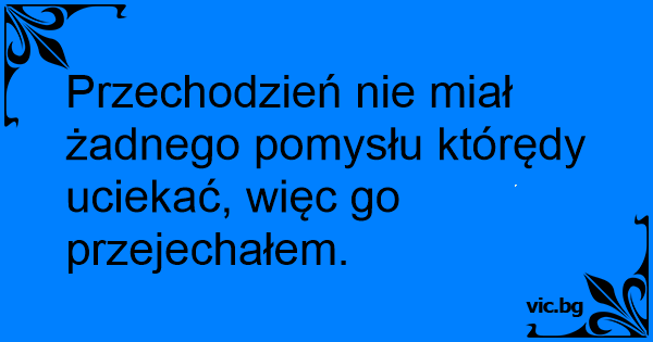Przechodzień nie miał żadnego pomysłu którędy uciekać, więc go przejechałem.