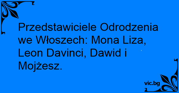 Przedstawiciele Odrodzenia we Włoszech: Моnа Liza, Leon Davinci, Dawid i Mojżesz.