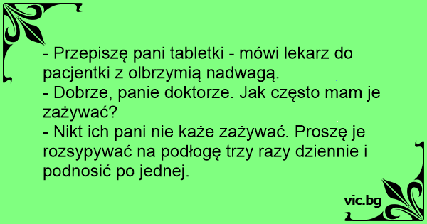 - Przepiszę pani tabletki - mówi lekarz do pacjentki z olbrzymią nadwagą.
