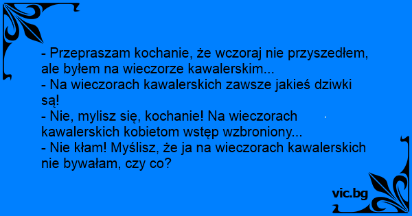 - Przepraszam kochanie, że wczoraj nie przyszedłem, ale byłem na wieczorze kawalerskim...