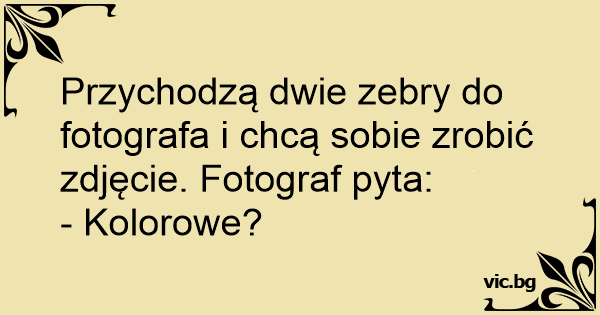 Przychodzą dwie zebry do fotografa i chcą sobie zrobić zdjęcie. Fotograf pyta: