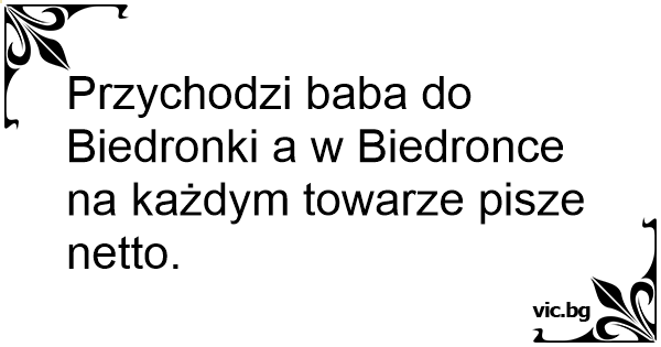 Przychodzi baba do Biedronki a w Biedronce na każdym towarze pisze netto.
