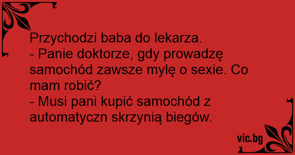 - Panie doktorze, gdy prowadzę samochód zawsze mylę o sexie. Co mam robić?