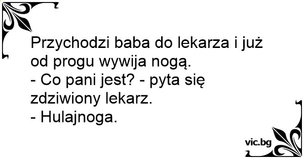 Przychodzi baba do lekarza i już od progu wywija nogą.