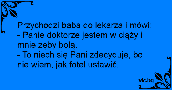 - Panie doktorze jestem w ciąży i mnie zęby bolą.