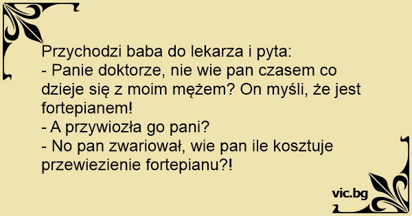 - Panie doktorze, nie wie pan czasem co dzieje się z moim mężem? On myśli, że jest fortepianem!