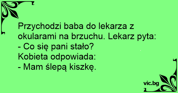 Przychodzi baba do lekarza z okularami na brzuchu. Lekarz pyta:
