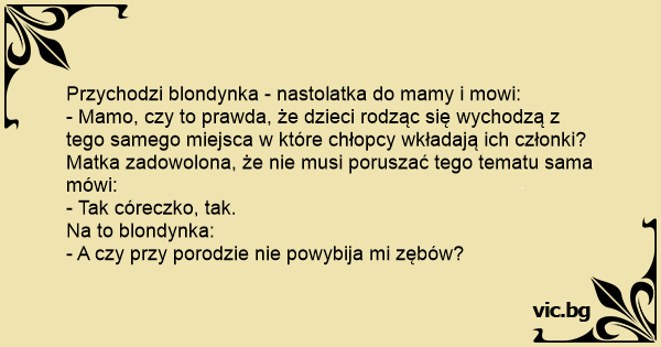 Przychodzi blondynka - nastolatka do mamy i mowi: