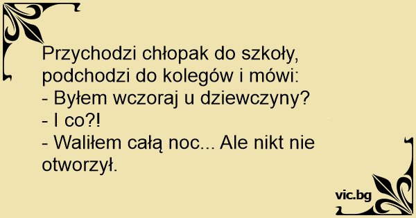 Przychodzi chłopak do szkoły, podchodzi do kolegów i mówi: