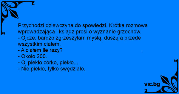- Ojcze, bardzo zgrzeszyłam myślą, duszą a przede wszystkim ciałem.
