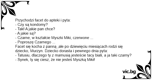 - Tatusiu, dlaczego ty z mamusią jesteście tacy biali, a ja taki czarny?