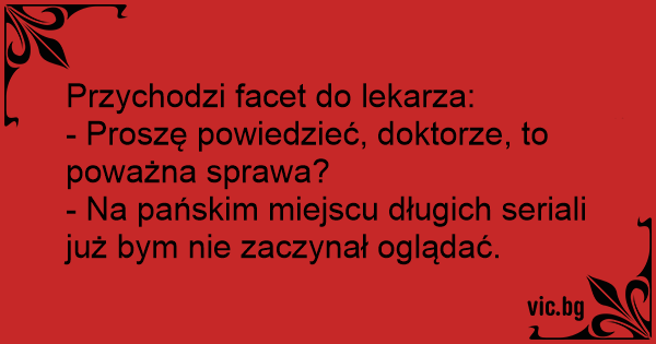 - Dakter, tā ir nopietna slimība? - Nu, seriālus es jums neieteiktu sākt skatīties...