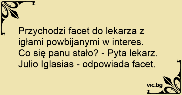 Przychodzi facet do lekarza z igłami powbijanymi w interes.