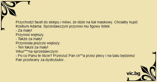 - Po co Panu te liście? Przerzuć Pan ch**a przez plecy i na balu będziesz