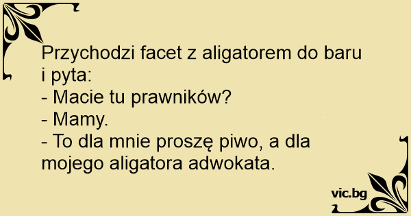 - To dla mnie proszę piwo, a dla mojego aligatora adwokata.
