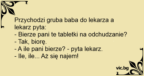 Przychodzi gruba baba do lekarza a lekarz pyta: