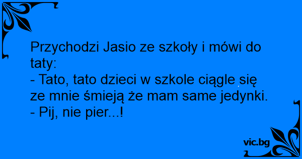 - Tato, tato dzieci w szkole ciągle się ze mnie śmieją że mam same jedynki.