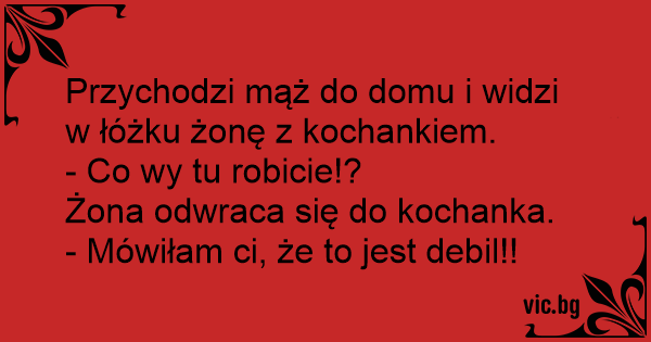 Przychodzi mąż do domu i widzi w łóżku żonę z kochankiem.