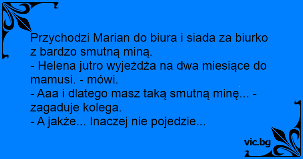 - Aaa i dlatego masz taką smutną minę... - zagaduje kolega.