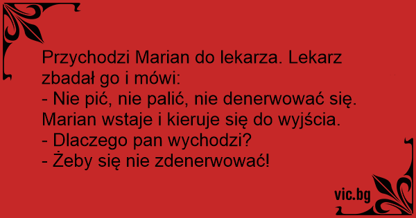 Przychodzi Marian do lekarza. Lekarz zbadał go i mówi: