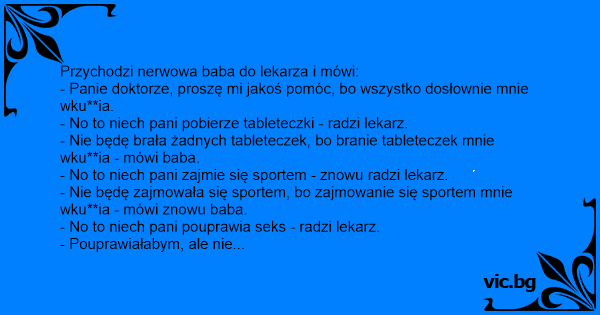 Przychodzi nerwowa baba do lekarza i mówi: