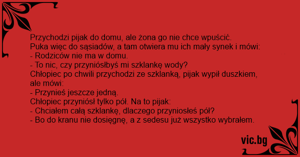 Chłopiec przyniósł tylko pół. Na to pijak: