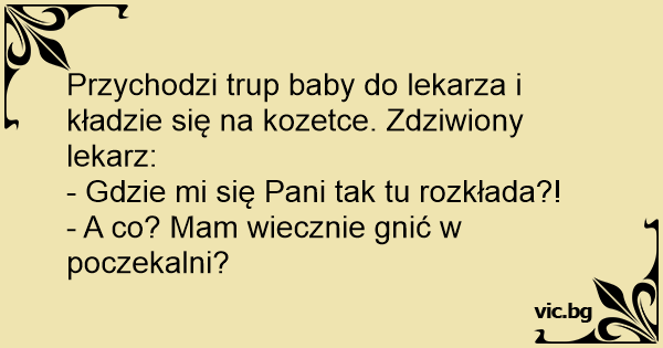 Przychodzi trup baby do lekarza i kładzie się na kozetce. Zdziwiony lekarz: