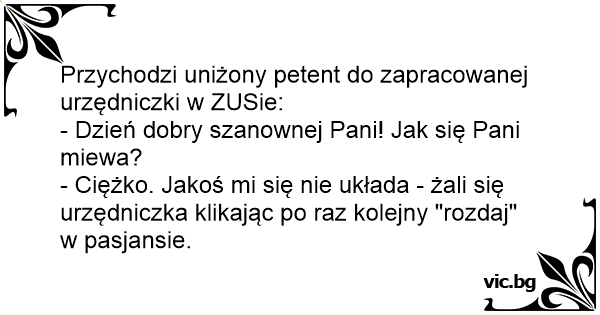 Przychodzi uniżony petent do zapracowanej urzędniczki w ZUSie: