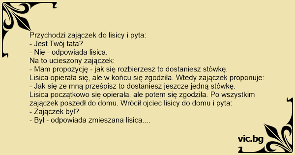 Przychodzi zajączek do lisicy i pyta: