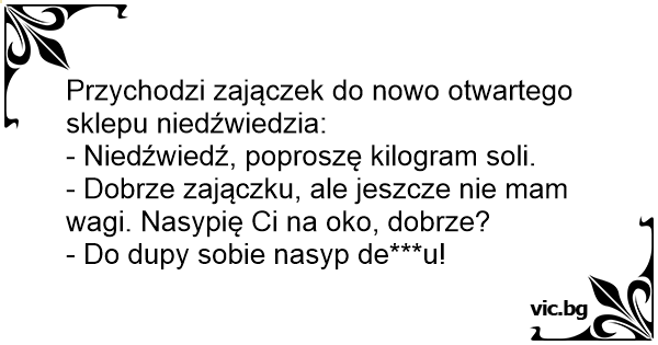Przychodzi zajączek do nowo otwartego sklepu niedźwiedzia: