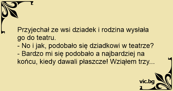 Przyjechał ze wsi dziadek i rodzina wysłała go do teatru.