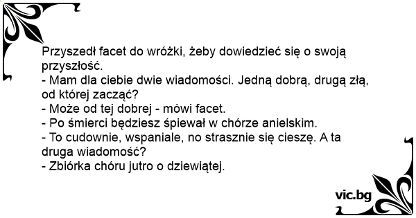 Przyszedł facet do wróżki, żeby dowiedzieć się o swoją przyszłość.