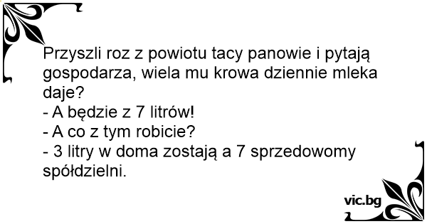 Przyszli roz z powiotu tacy panowie i pytają gospodarza, wiela mu krowa dziennie mleka daje?