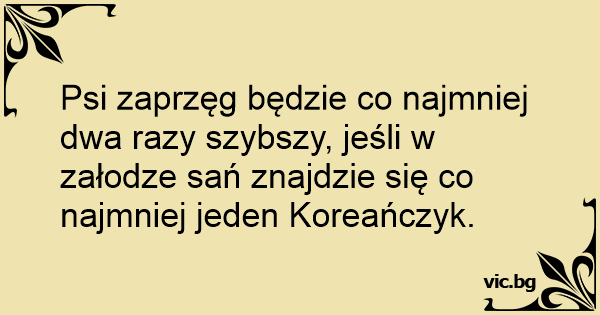 Psi zaprzęg będzie co najmniej dwa razy szybszy, jeśli w załodze sań znajdzie się co najmniej jeden Koreańczyk.
