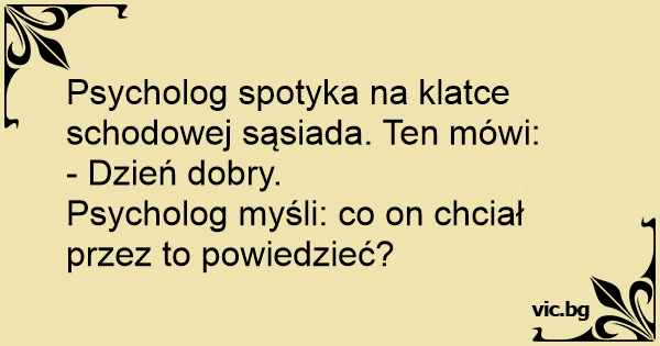 Psycholog spotyka na klatce schodowej sąsiada. Ten mówi: