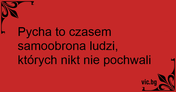 Pycha to czasem samoobrona ludzi, których nikt nie pochwali