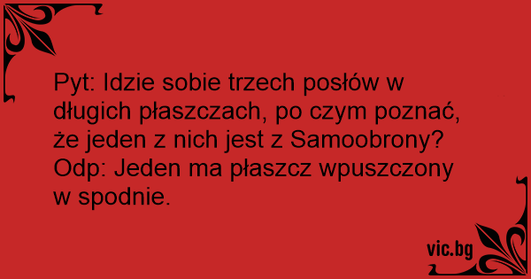 Pyt: Idzie sobie trzech posłów w długich płaszczach, po czym poznać, że jeden z nich jest z Samoobrony?