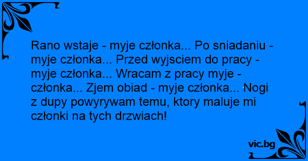 Rano wstaje - myje członka... Po sniadaniu - myje członka... Przed wyjsciem do pracy - myje członka... Wracam z pracy myje - członka... Zjem obiad - myje członka... Nogi z dupy powyrywam temu, ktory maluje mi członki na tych drzwiach!