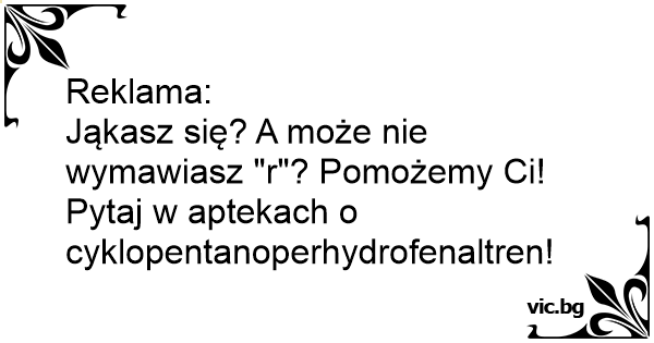 Jąkasz się? A może nie wymawiasz "r"? Pomożemy Ci! Pytaj w aptekach o cyklopentanoperhydrofenaltren!