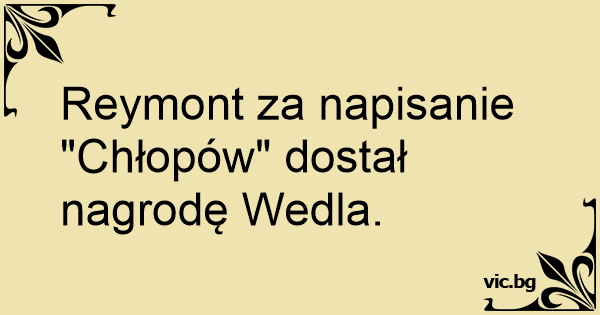 Reymont za napisanie "Chłopów" dostał nagrodę Wedla.