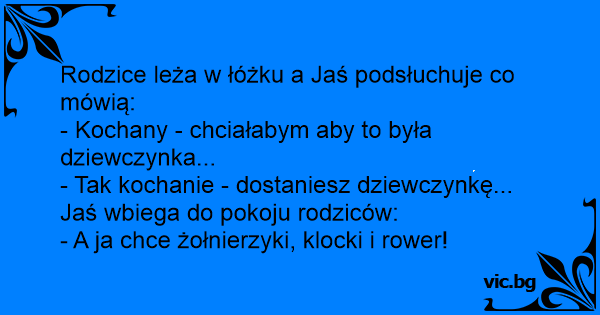 Rodzice leża w łóżku a Jaś podsłuchuje co mówią:
