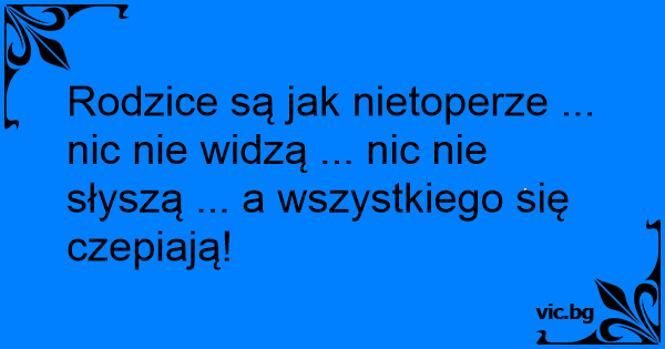 Rodzice są jak nietoperze ... nic nie widzą ... nic nie słyszą ... a wszystkiego się czepiają!